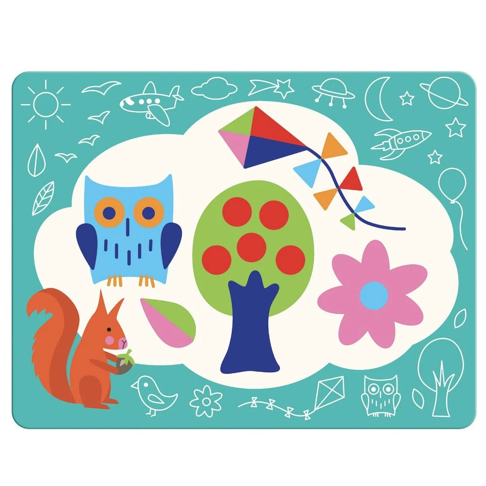 De 4 verschillende platen zijn 26 x 19.5 cm en zitten verpakt in een doorzichtige bewaarmap. Geschikt voor peuters 18 mnd+.