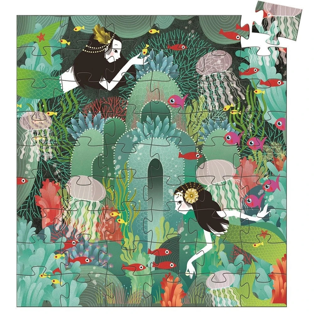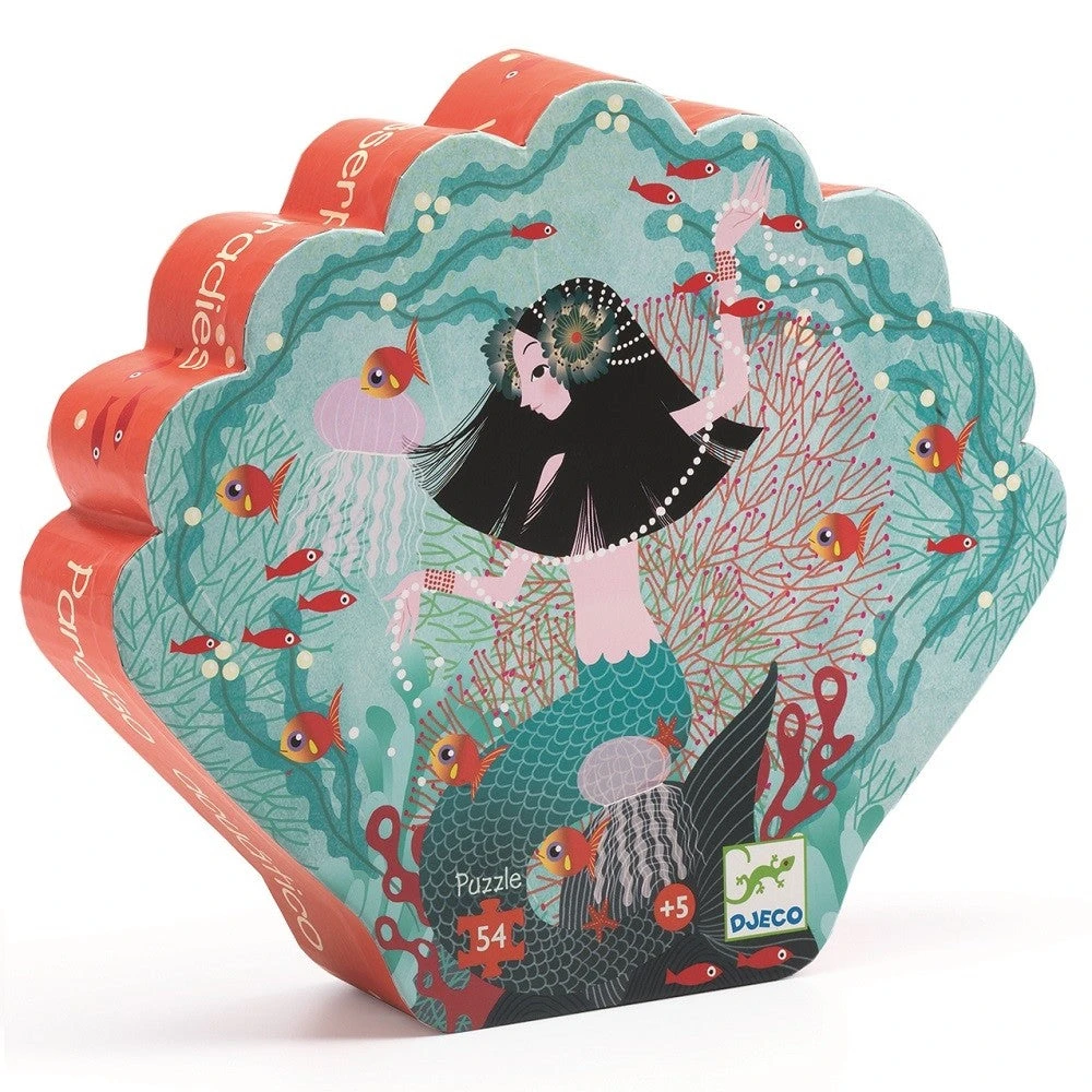 Een prachtige doos in de vorm van een schelp met een DJECO puzzel. De puzzel laat een adembenemende onderwaterwerled zien. De puzzel is 40 x 37 cm groot en heeft 54 puzzelstukjes.