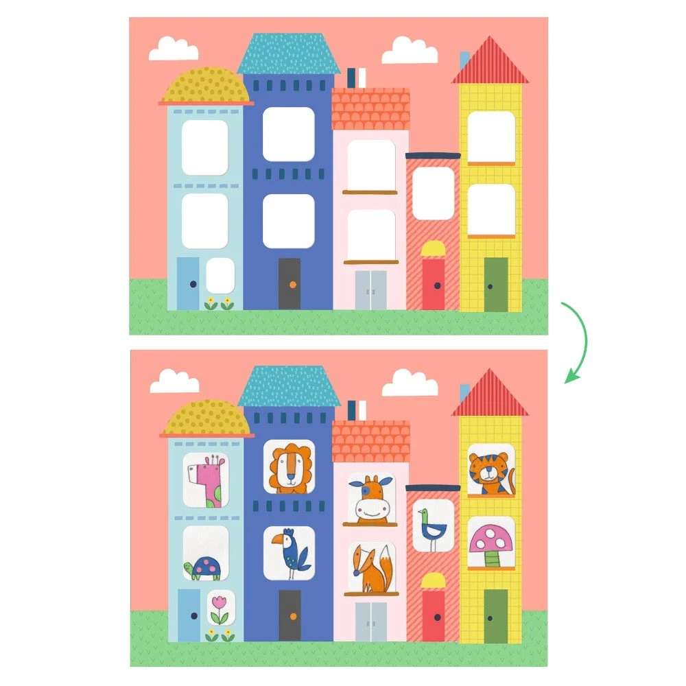 De kuntselset bestaat uit 8 grote prenten waar je 30 verschillende dieren aan toe kunt voegen. De dieren die je over kunt trekken staan op 15 verschillende kaarten met elk 2 dieren. Incl een potlood en 4 viltstiften.