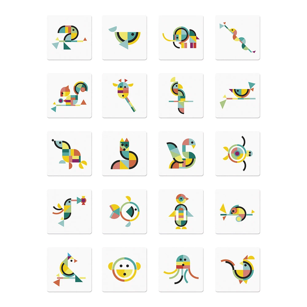 Een houten JANOD koffer vol magneten om dieren mee te puzzelen. Kies 1 van de 20 voorbeeldkaarten en maak ze na met de magnetische vormen. Deze magneetpuzzel is geschikt voor kinderen vanaf 3 jaar.