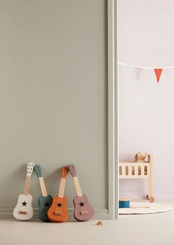 Kids Concept gitaar, een lilac speelgoed gitaar voor kleine en grote muzikanten. Dit muziekinstrument is een aanwinst voor kleuter die graag muziek maken. Ook mooi als accessoire op de kinderkamer.