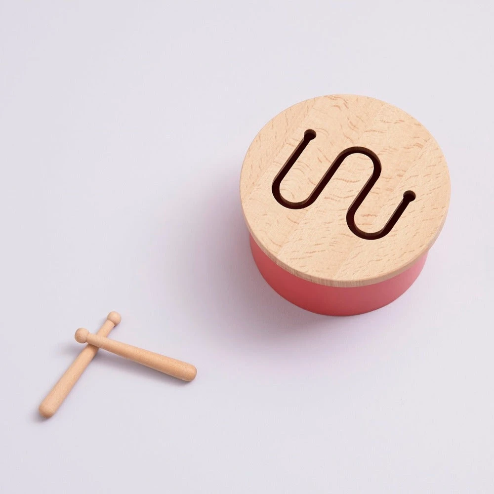 Kids Concept trommel in roze rood, een houten speelgoed muziekintrument voor peuters vanaf 18 maanden. De muziektrommel maakt een mooi zacht geluid wanneer je erop slaat met de drumstokken. De houten speelgoed trommel is helemaal van hout, dit zorgt voor een mooie klank.