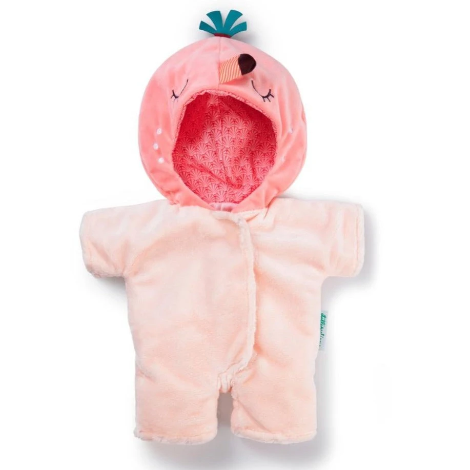 De Lilliputiens poppen onesie Anais, een warm pakje voor jouw stoffen speelgoed pop Noa, Lou of Rose. Verkleed je pop als Anais de flamingo en neem haar mee op pad in de draagzak of het reismandje.