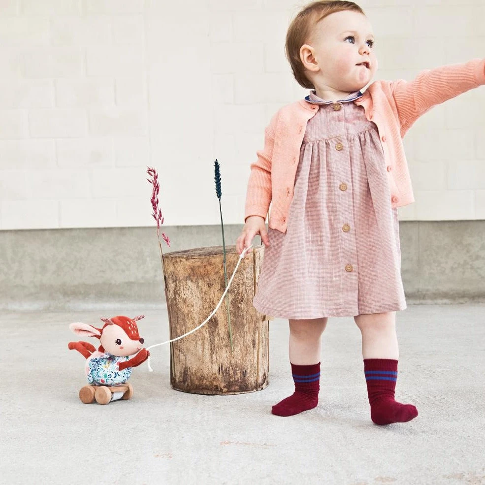Lilliputiens trekfiguur en knuffel in 1! Het hertje Stella trek je rond op haar houten karretje met wielen, en als je op de bestemming bent haal je haar los met de klitteband op haar buikje. Zo kun je lekker knuffelen met de knuffel in de vorm van een hertje.