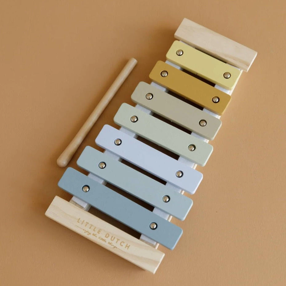 Little Dutch xylofoon, een houten speelgoed muziekinstrument in mooie blauwe en naturel kleuren. Peuters worden kleine muzikanten, met dit vrolijke speelgoed instrument. Zeven verschillende muziektonen met verschillende houten toetsen die je bespeelt met het houten stokje.