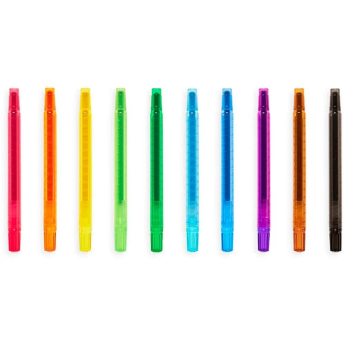 OOLY geur wasco’s een set van 10 wasco krijtjes met verschillende geuren in een twist-up pen. Deze set bestaat uit 10 heldere kleuren wasco in een pen, allemaal met een andere fruitgeur. De pen is extra makkelijk want dit voorkomt dat de wasco snel breekt en houdt de handen schoon.