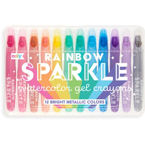OOLY metallic waterverf stiften Rainbow sparkle, voor kinderen die graag creatief bezig zijn. Deze set bestaat uit 12 verschillende kleuren waterverf stiften waar op verschillende manieren mee getekend kan worden. De vette waterverf droogt niet uit en zit in een pen, draai de pen omhoog en kleuren maar.