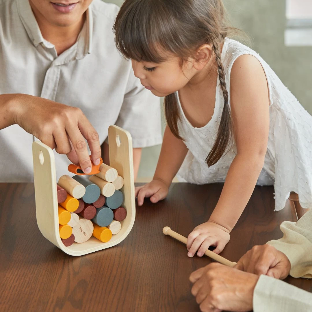 Dit spel komt uit de Plan Toys collectie van 2023 en is ook verkrijgbaar in een grijze variant.